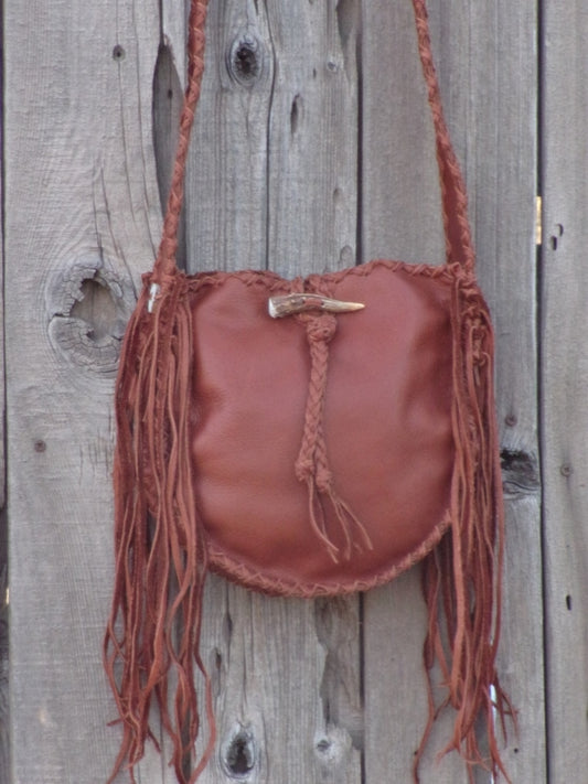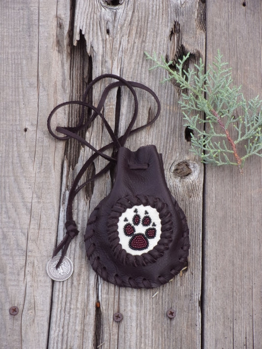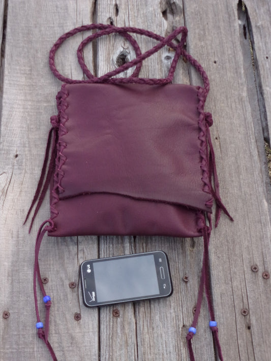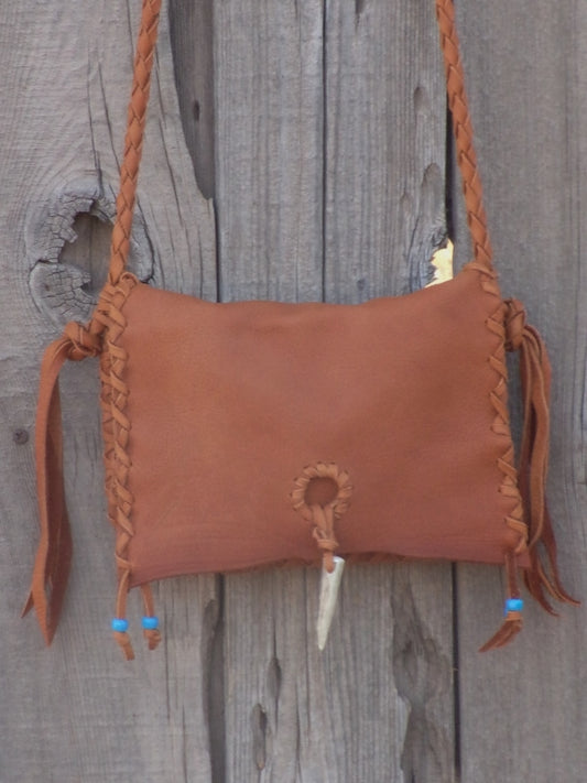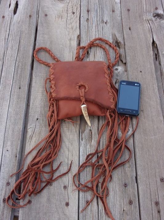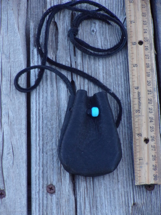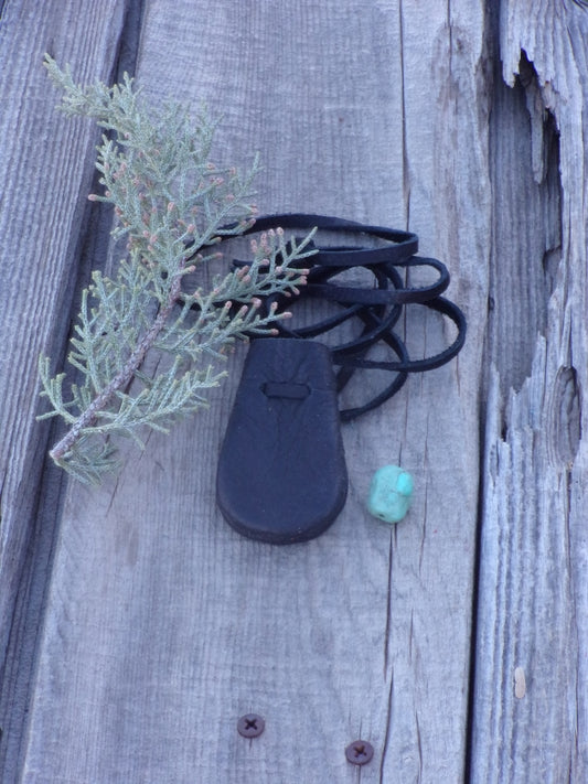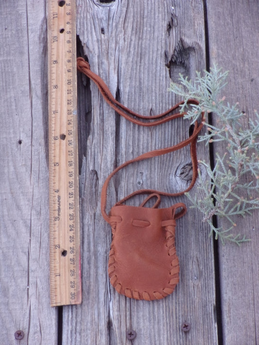 Leather medicine bag . Leather crystal bag , Necklace bag